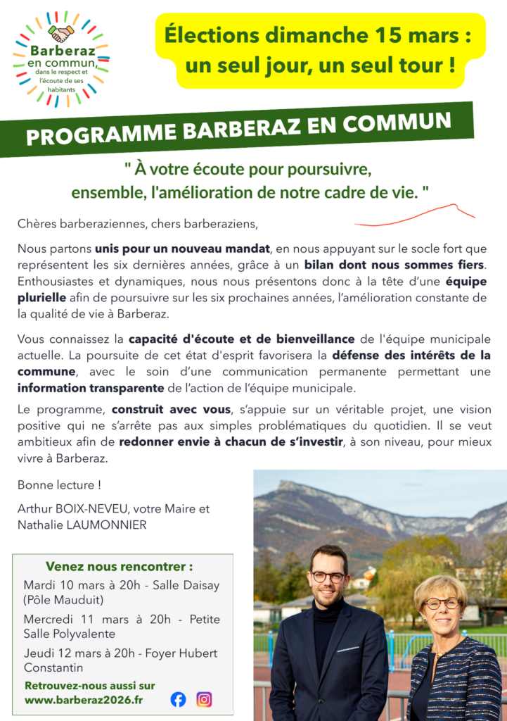 Barberaz en commun, dans le respect et l'écoute de ses habitants